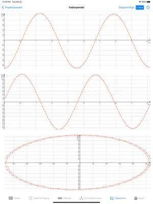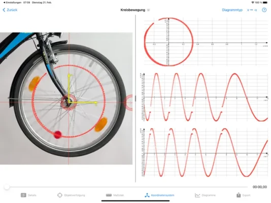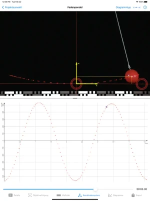 • In der Ansicht „Koordinatensystem“ lassen sich nun während der Festlegung des Koordinatensystems gleichzeitig ausgewählte Diagramme daneben anzeigen. Somit erkennt man in Echtzeit sofort, wie sich die Wahl der Koordinatenachsen auf die Ergebnisse auswirkt. Tip: Je nach Seitenverhältnis des Videos und Anzahl der ausgewählten Diagramme kann es besser sein, das iPad dafür ins Hochformat zu drehen. Die Aufteilung der zwei Bildschirmbereiche lässt sich außerdem einstellen.