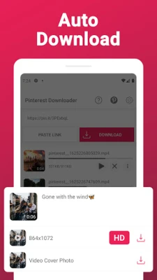 2️⃣ Open pinterest video download app and click the save icon to the quality you want