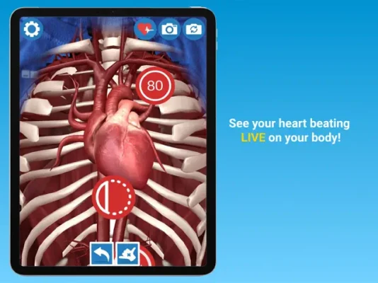 The app works in conjunction with our augmented reality t-shirt to bring learning to life with an experience that's unlike anything else. Unlock a detailed and realistic simulation of the anatomy by pointing your iPhone or iPad at The Virtuali-Tee. It works in selfie mode too!