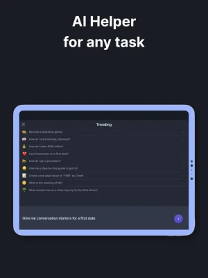 Personalized AI Helper: Get tailored assistance for any task. Whether you’re aiming to become a marketing expert or learn a new language, VisualMind’s AI Helper provides step-by-step solutions and personalized guidance.