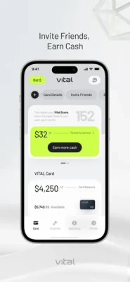 Make use of a credit card app built for the twenty-first century: Track your cash rewards and referral stats. Manage every aspect of your Vital Card account. And monitor your credit score, alongside assessments of the behaviors that may be helping and hurting your credit.