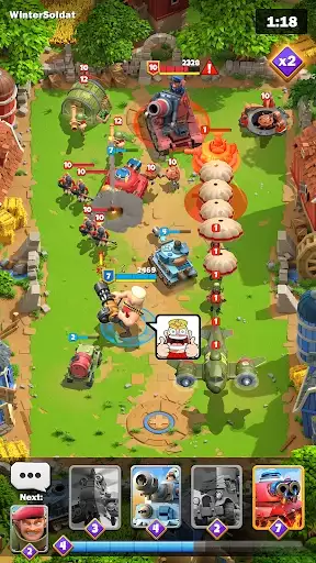 Take on other combatants in real-time battles, commanding one of the many unique Heroes, while deploying cards from your customized battle deck. Victories provide you with the spoils of war you’ll need to upgrade your troops, acquire new cards, and increase in power!
