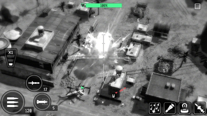 • Fire 25mm Gatling guns, launch Hydra 70 rockets, and deploy Hellfire missiles to wipe out enemy squads.