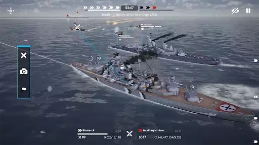 Form a fleet of up to 70 ships and conquer the sea. You can create the strongest squadron with ships of various nationalities such as german Bismarck, IJN Musashi, and USS Gearing.
