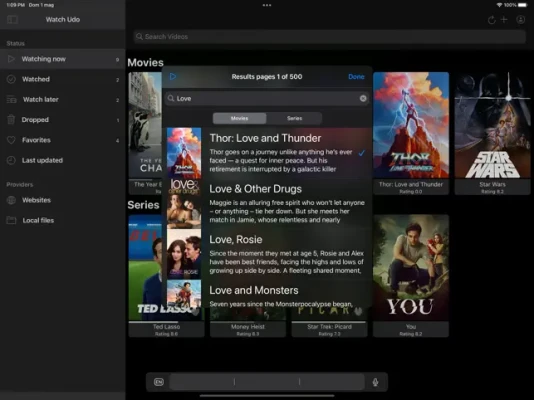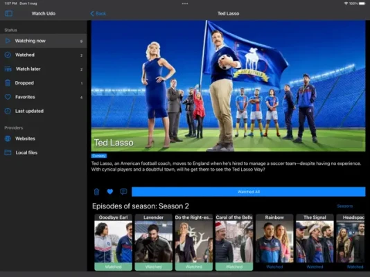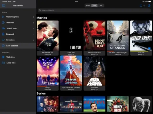 With Watch Udo you can manage your TV series and movies in one place. Keep track of the time you spend watching movies and save the viewing position.