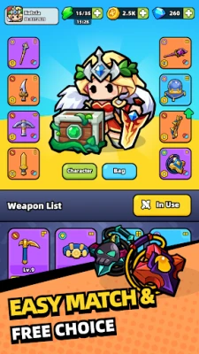 In Weapon Master, you'll have a dedicated backpack where you can craft weapons to boost your fighting prowess. You'll use the items in your backpack for battles and progression. Beyond just the quality of your weapons, the most important aspect is how you strategically arrange high-quality weapons in your limited backpack space. By constantly crafting better weapons and optimizing your backpack layout, you'll become increasingly powerful.