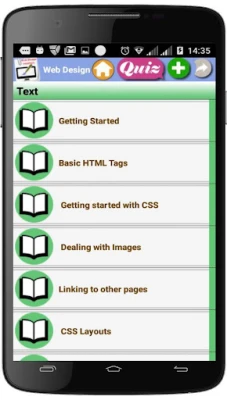 This free application is a dynamic library powered by the best English educational websites specialized in Web Design Courses.