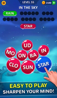 ========= Word bubble puzzle is mixture of word connect and word search game. 500+ levels. Four themes. Unique levels. All the levels are made with day to day activities and things. If you like word puzzle game, word search, word cross, crossword than you will loved this game Use hint while you getting stuck.