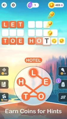 - Have difficulty coming up with the word games? You can use coins to buy a hint to help solve the level.