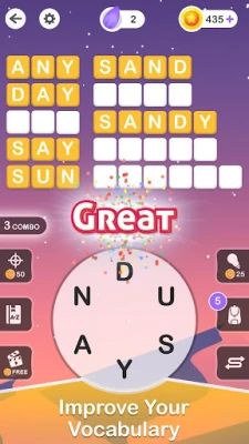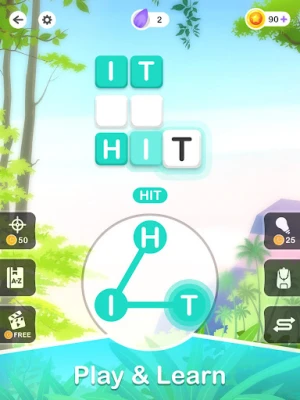 - Find as many words as possible to unlock levels and earn extra bonus coins.