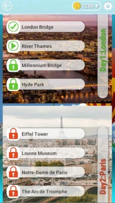 ๐ In each part you will visit some wornders of the world. There are 5 tourist attractions to see in each city of your world trip. In each daily crossword part there are 4-12 levels.