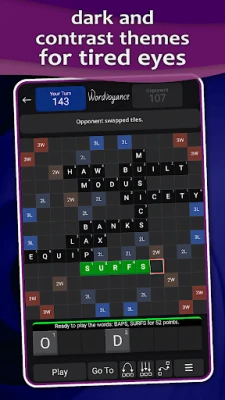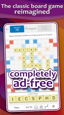 NEW: Play the newly-added Wordvoyance single player mode to learn the game, sharpen your skills, and test your might against the CPU at a faster pace than playing against human opponents, all with no ads or distractions!