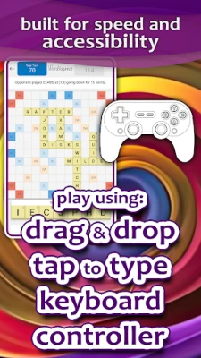 If you've played other crossword-building games, Wordvoyance works exactly as you expect. You can drag and drop tiles onto the game board to form words and score points. But we didn't stop there! You can also just tap your tiles to place them in a line as fast as you can type. And for those that need to or want to, this game can be played with a number of different input methods including keyboards, game controllers, and even assistive technologies such as braille displays. At long last, fully-sighted and visually-impaired players alike can enjoy this classic board game together!