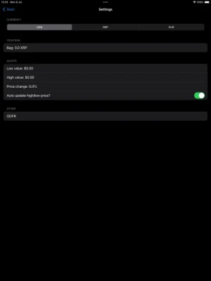 Keep an eye on the price of XRP. Easily set alerts so that you know when the price moves. The app's auto price alert feature automatically moves the value of your set alert price by 10%. XRP Tracker updates the value of your XRP bag. Track in USD, GBP or EUR.