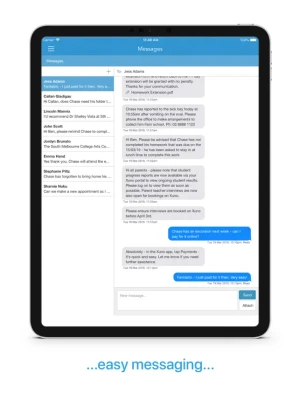* Messages from the school * A student’s timetable * News items * Attendance communications * Events, Camps & Excursions * Fee and Event Payments * Parent Teacher Interviews * School Reports