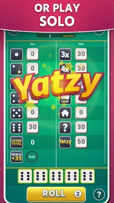 YATZY is a board game with its original rules. Five dices with six sides and 15 sections to be filled in 15 rounds. It is a Scandinavian public domain dice game very similar to Poker Dice, Yacht, Generala and Cheerio. Yatzy Fun is also known as Yachty and Farkle in different countries. You can play Yazy with your virtual buddies with high level artificial intelligence. Do not hesitate to play Yatzee with your make-believe friends. They are virtual but this prevents wasting precious time for waiting for live opponents.