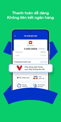 Người dùng sẽ được linh hoạt lựa chọn thanh toán từ tất cả các nguồn tiền, theo thói quen yêu thích như số dư Zalopay, Số dư sinh lời, Tài khoản trả sau, tài khoản ngân hàng đã liên kết, chuyển khoản trực tiếp từ ứng dụng ngân hàng bằng cách tải mã và thanh toán, Apple Pay, Visa, Mastercard...