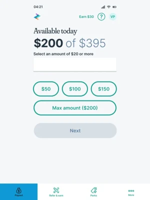 Make today the new payday. How it works: Each day you work, you build up an available amount and can choose how much of your wages you’d like to receive, instantly! On your payday, you are paid normally, minus the amount you accessed early.