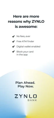 Open your ZYNLO More Spending checking account1 and a Tomorrow Savings account,2 then use your ZYNLO debit card.